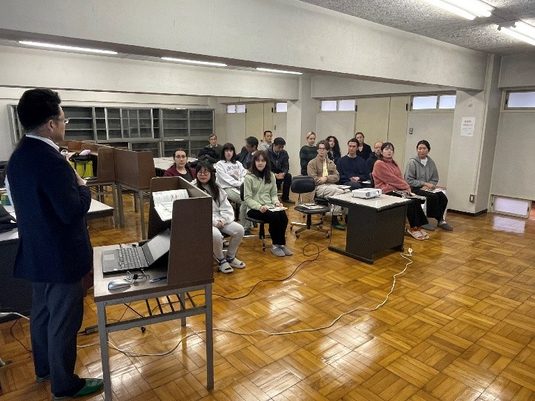 湘南キャンパスで2025年2月18日(火)に、大規模地震が発生した際の対応等について「留学生防災セミナー」を実施しました。国内各地で地震による大規模災害が発生していることを受けて、学長室総務担当が企画・運営し、学長室国際担当及び総合教育センター連携で実施しました。今回は、国際会館及びL館学生寮の利用留学生及び管理人ら合わせて20名が参加しました。