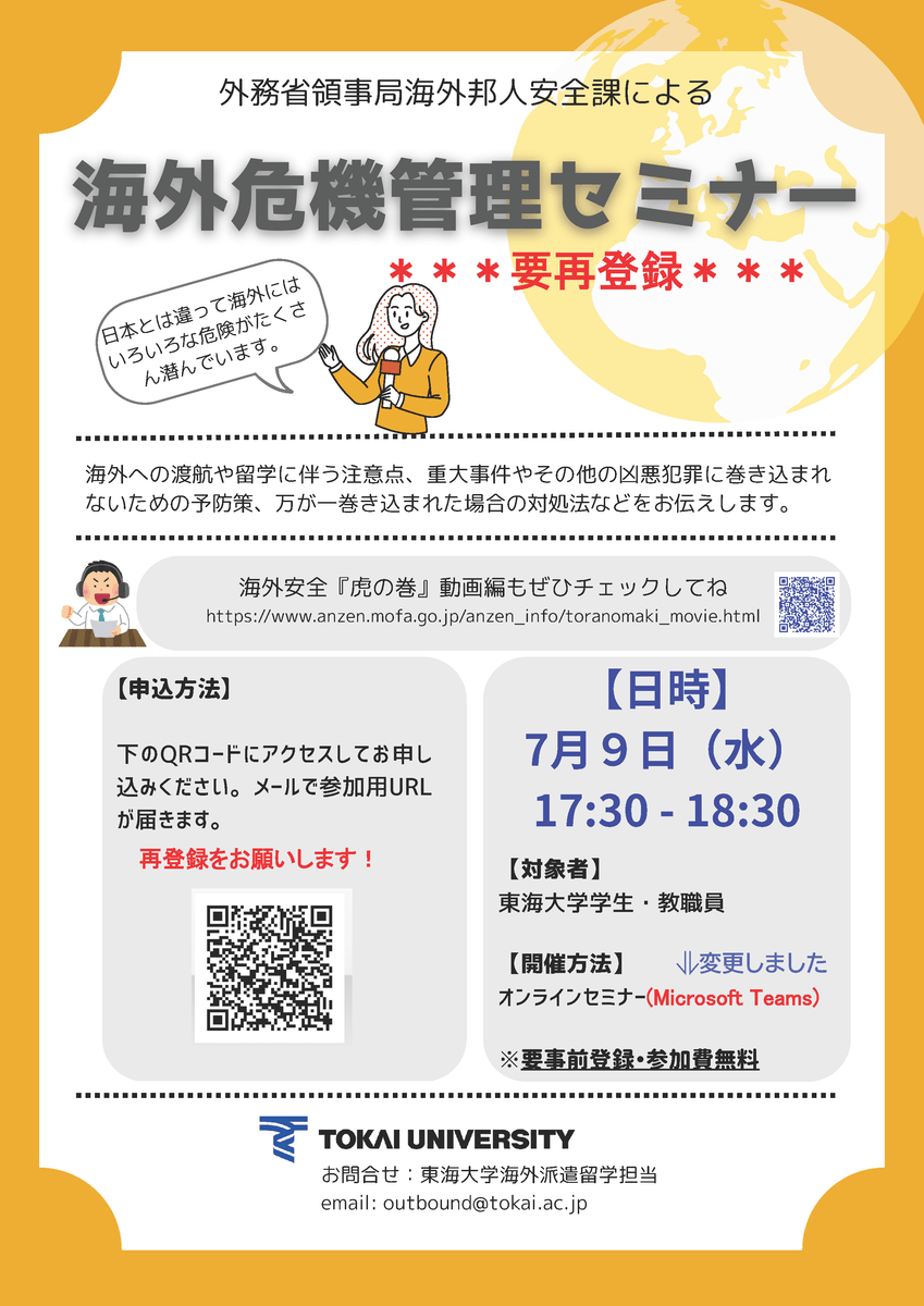 #東海大学 #tokaiuniversity #東海大学留学 #海外派遣留学 #studyabroad #海外危機管理 #外務省 #外務省領事局 #ministryofgoreignaffairs #海外留学 #留学