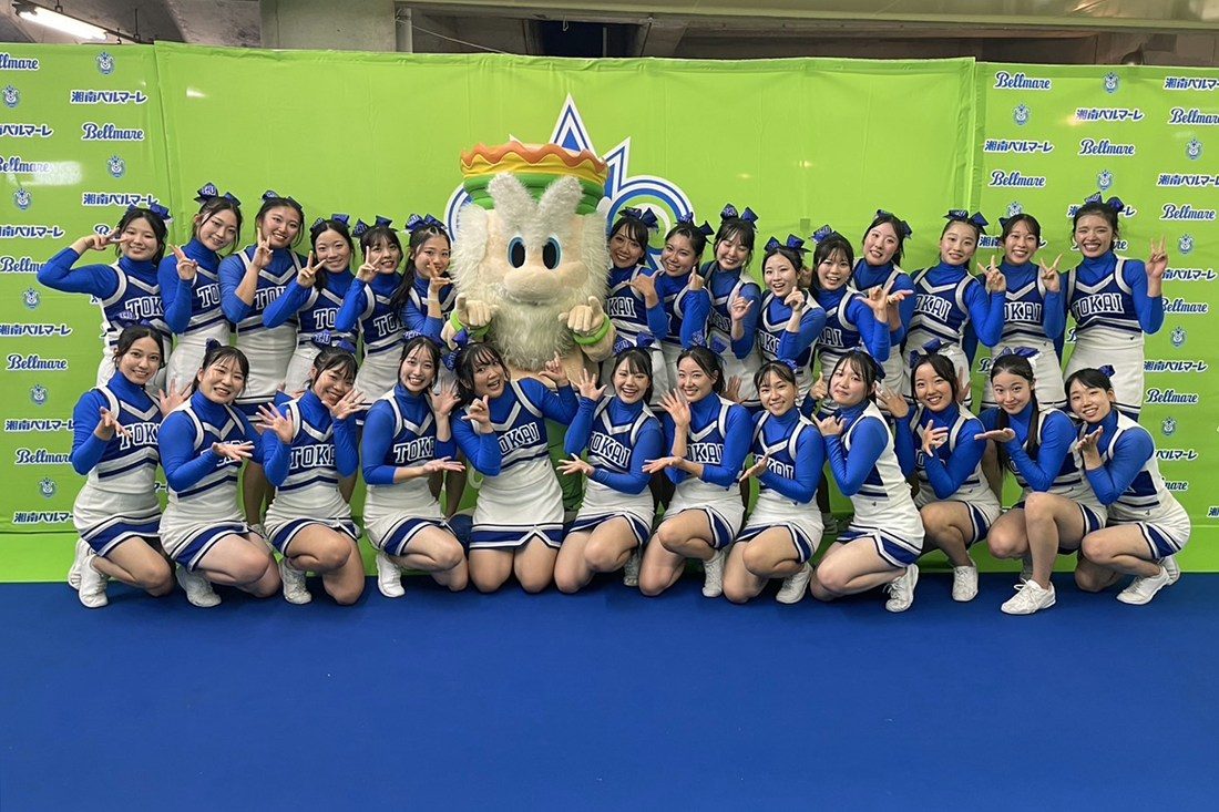 湘南キャンパスのチアリーディング部が、8月16日に神奈川県・レモンガススタジアム平塚で開催されたサッカーJ1リーグ「湘南ベルマーレ」のホーム試合でパフォーマンスを披露しました。この企画は、「平塚市・東海大学交流提携40周年記念事業」の一環として市から依頼があったもの。同部では、チアリーディングの各種大会への出場を通じて日々競技力向上に励む一方で、毎年キャンパス内で行われる本学運動部のホームゲームや建学祭、プロスポーツチームの試合でパフォーマンスを披露するなど選手たちを応援しています。