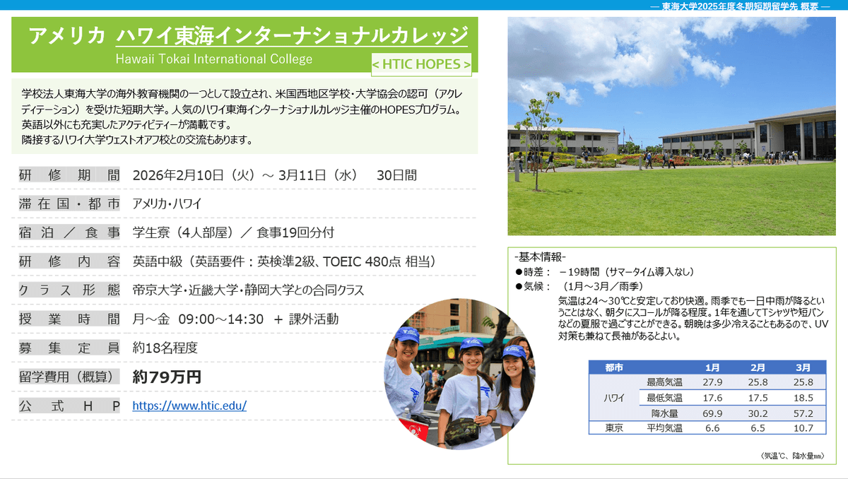 1)ハワイ東海インターナショナルカレッジ HOPESプログラム