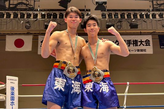 湘南キャンパスのキックボクシング部が、11月15日に行われた「全日本学生選手権大会&UKFチャンピオントーナメント決勝戦」に出場。バンタム級の花田佑斗選手(情報通信学部3年次生)と、ライト級の細田一颯選手(工学部4年次生)が初のチャンピオンに輝きました。