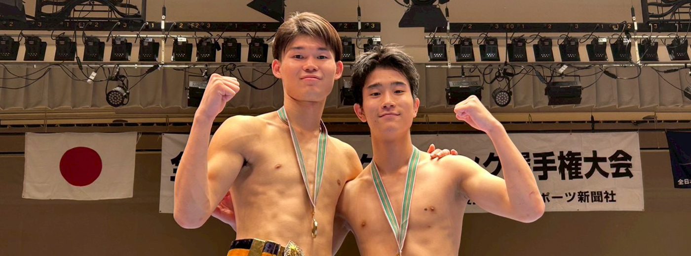 湘南キャンパスのキックボクシング部が、11月15日に行われた「全日本学生選手権大会&UKFチャンピオントーナメント決勝戦」に出場。バンタム級の花田佑斗選手(情報通信学部3年次生)と、ライト級の細田一颯選手(工学部4年次生)が初のチャンピオンに輝きました。