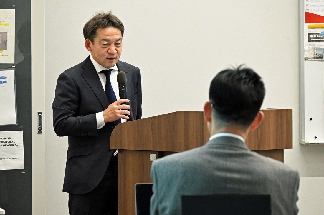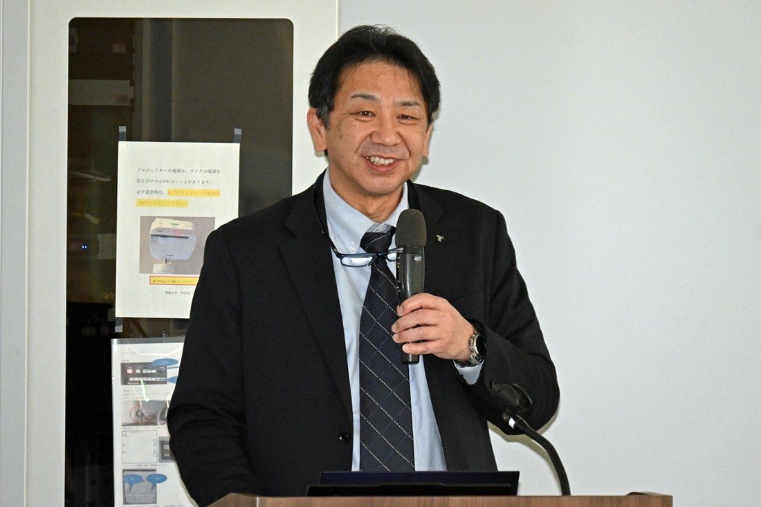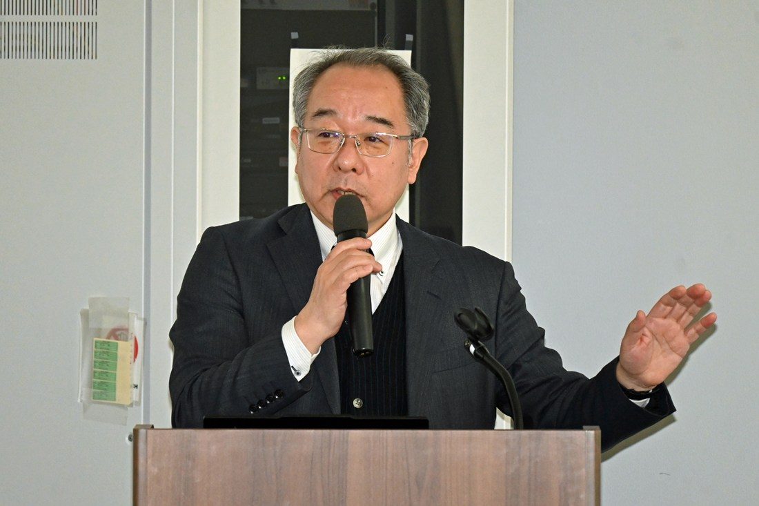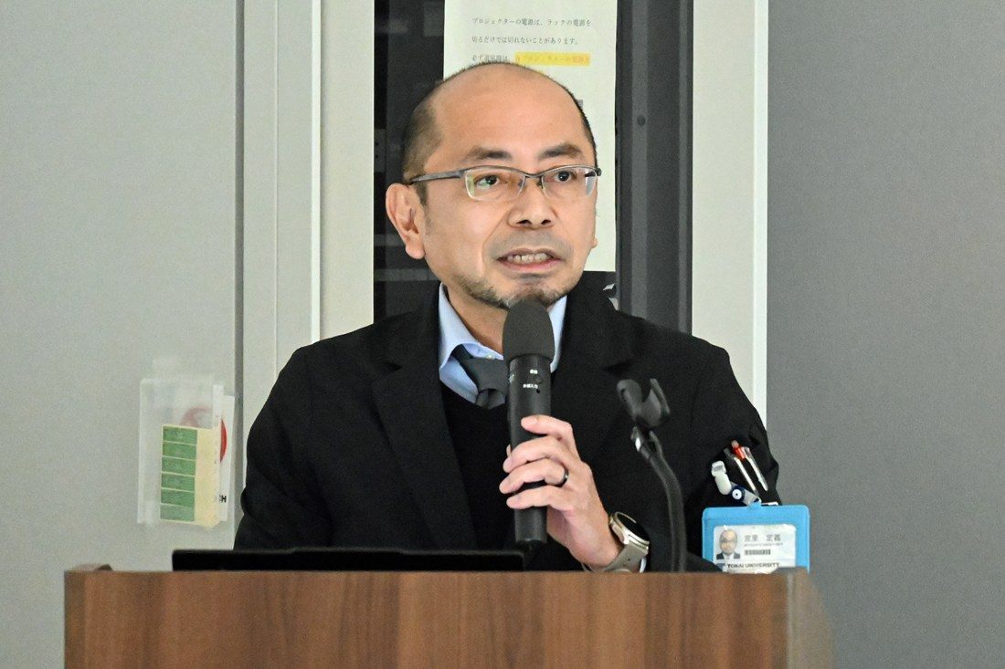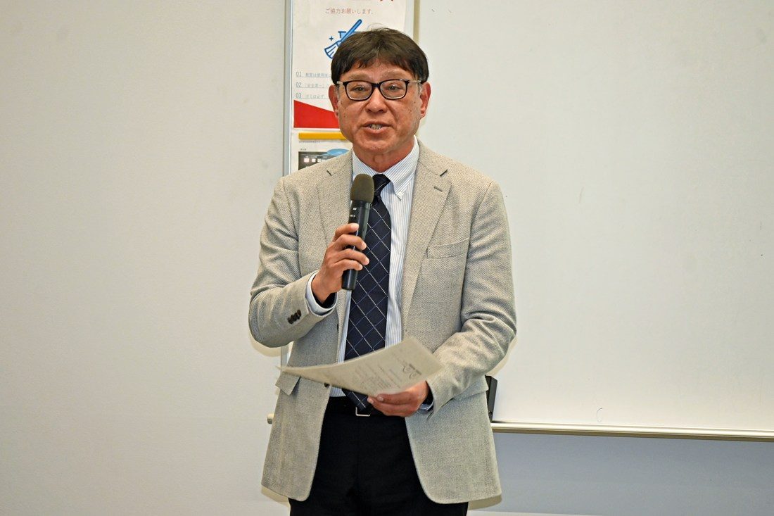 学内の情報共有としては、学長室入試担当の山本義郎部長(理学部教授)が入試制度について、同教学担当の宮里定義次長は2026年度から導入する学生教育研究災害傷害保険についてそれぞれ説明。キャンパスライフセンター健康推進担当の宮崎誠司部長(スポーツ医科学研究所教授)がクラブ健康診断の重要性と受診の案内をしました。さらに医学部付属病院整形外科科長の酒井大輔教授が、医学部と体育学部が連携して2022年度から取り組む「東海大学メディカルサポート」について今年度の活動成果を報告しました。また、研修会の途中で木村英樹学長もあいさつに立ち、昨年7月に湘南キャンパスに完成した人工環境制御室(暑熱・常圧低酸素室)「H3-Lab.」に触れ、「データなどの科学的根拠をもとに、競技力の向上や再現性を高めることも大学でスポーツを行う意義の一つです。スポーツ分野における文理融合を目指してください」と呼びかけました。