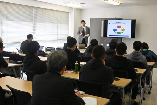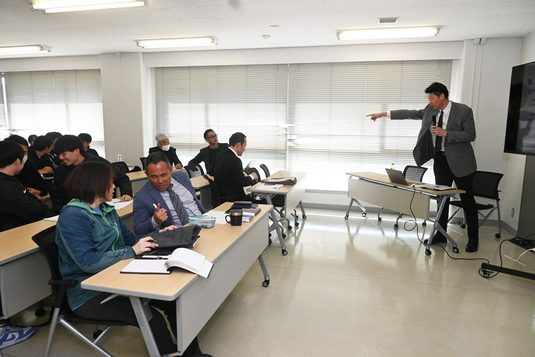 スポーツプロモーションセンター(SPC)では2月16日に湘南キャンパスで「指導者勉強会」を開催しました。本学強化指定クラブの指導者が一堂に会し、知識や情報を共有することを目的としたもの。今回はSPC所長の陸川章教授が講演し、約50名が参加しました。