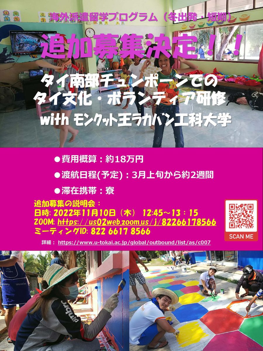 タイ文化・ボランティア研修(タイ南部チュンポーンで、現地の学生さんとタイ文化を学んだり、ボランティアを行ったり、日本文化の紹介をしたりします。)