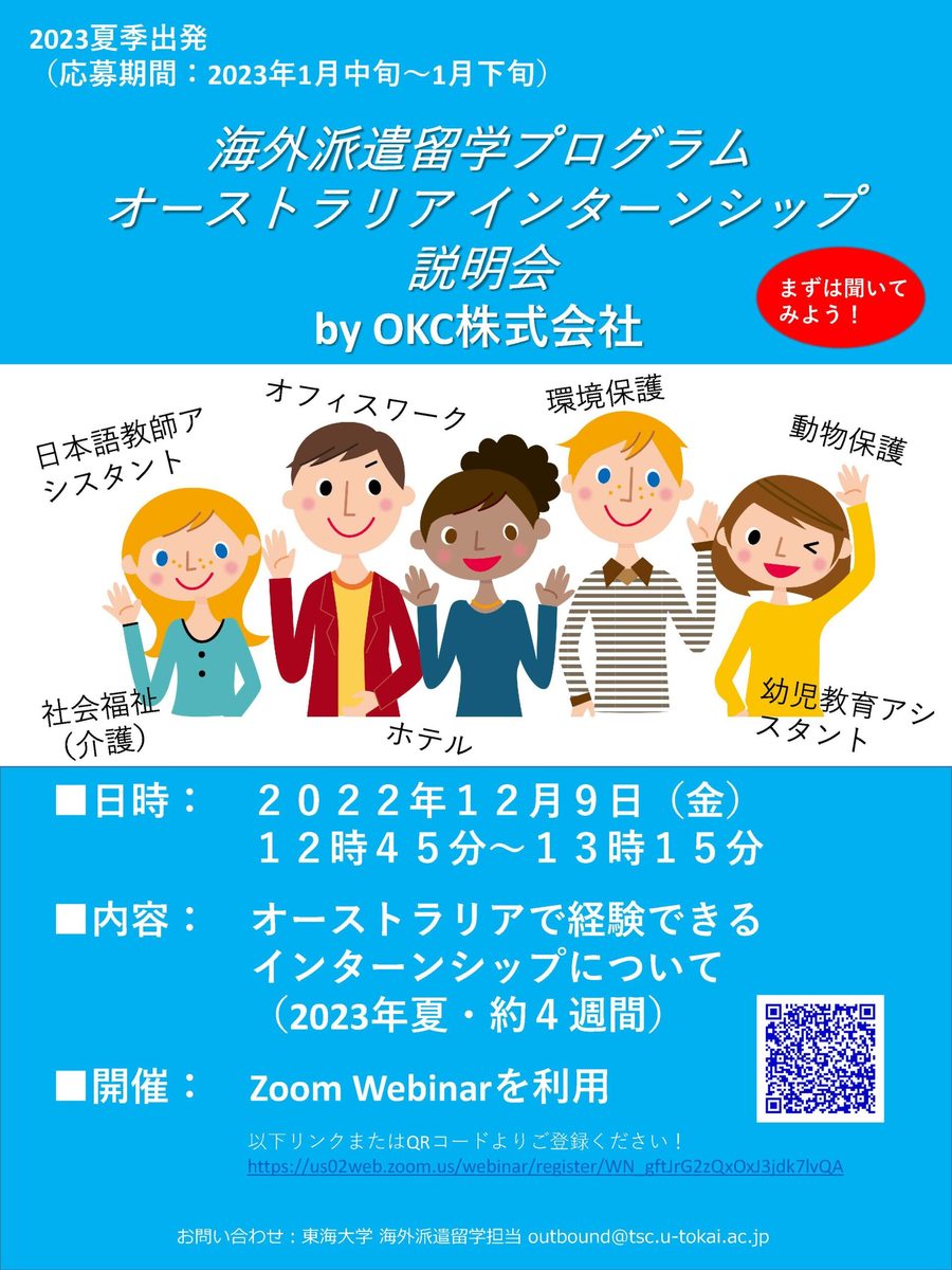 2023年夏季出発『オーストラリアインターンシップ』の説明会を行います。