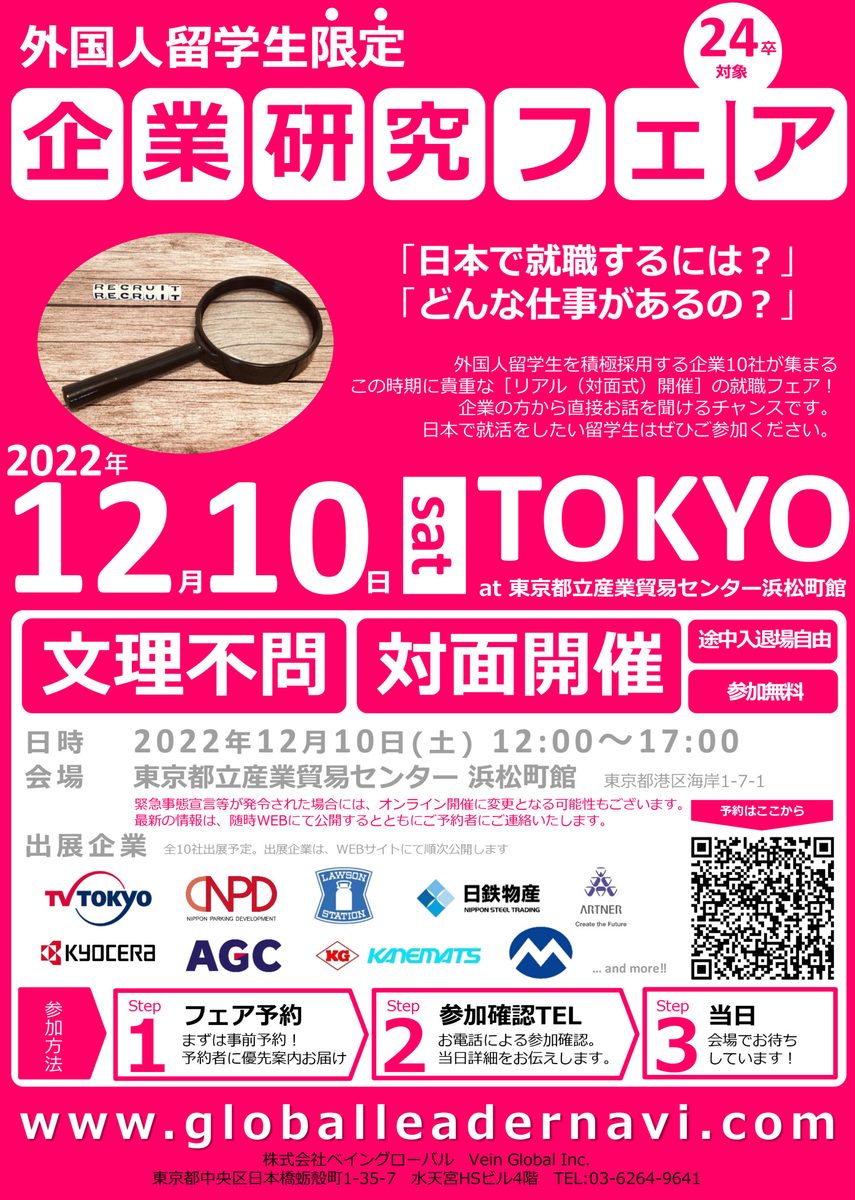 ■内容:外国人留学生を積極採用する企業10社が集まるこの時期に貴重な[リアル(対面式)]の就活フェア!企業の方から直接お話を聞けるチャンスです。日本で就活をしたい留学生はぜひご参加ください。