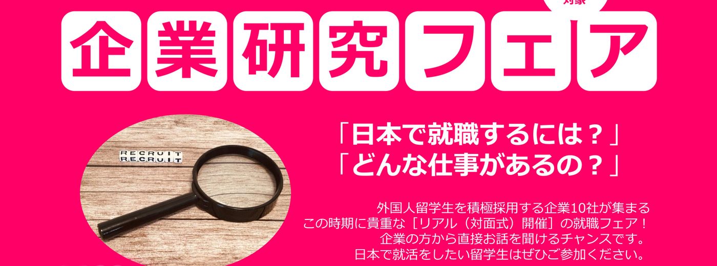 ■内容:外国人留学生を積極採用する企業10社が集まるこの時期に貴重な[リアル(対面式)]の就活フェア!企業の方から直接お話を聞けるチャンスです。日本で就活をしたい留学生はぜひご参加ください。