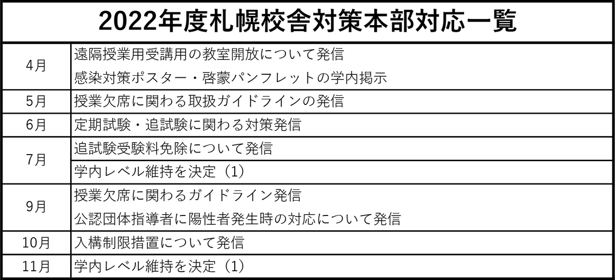 - 別表「2022年度札幌校舎対策本部対応一覧」参照