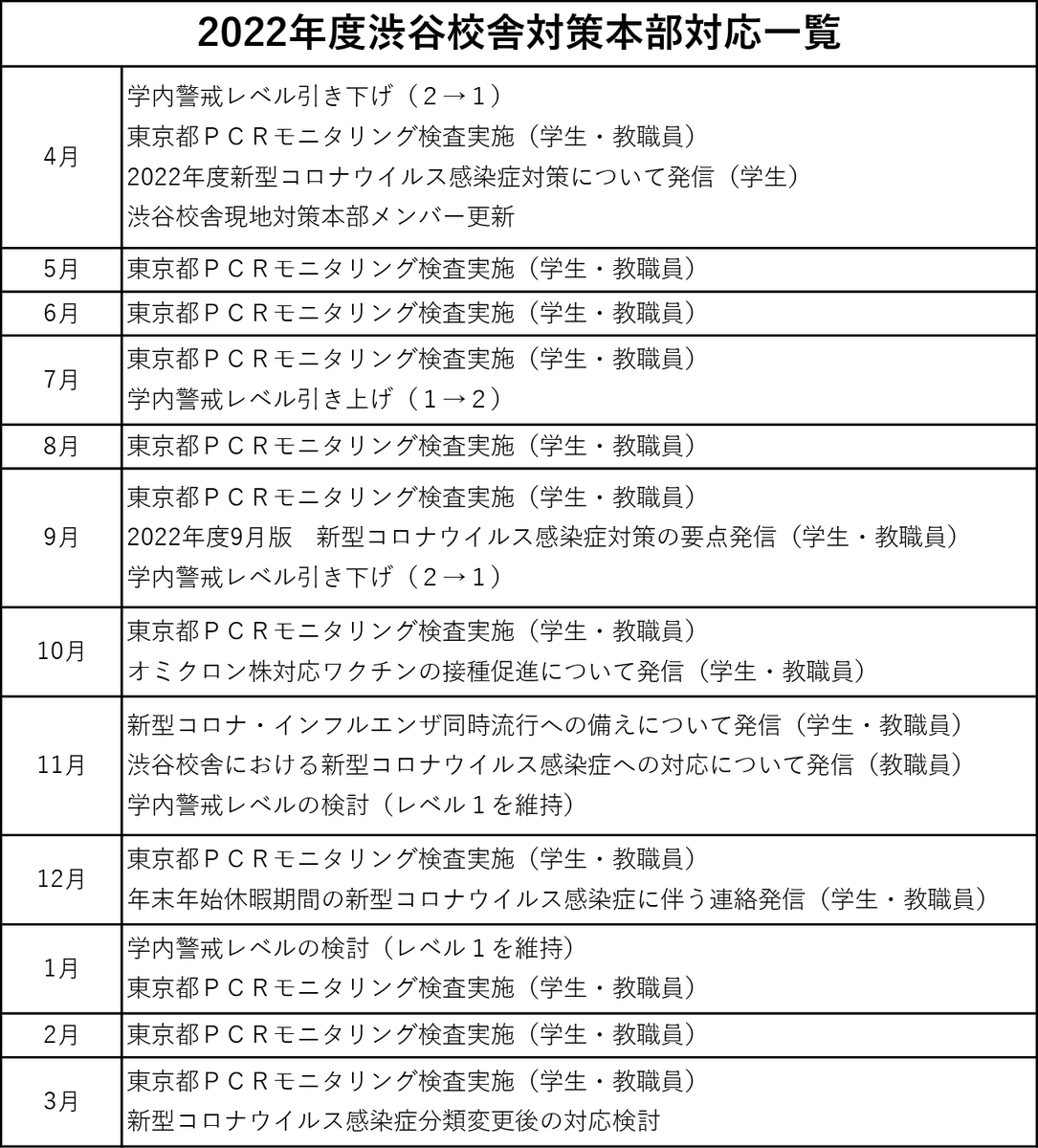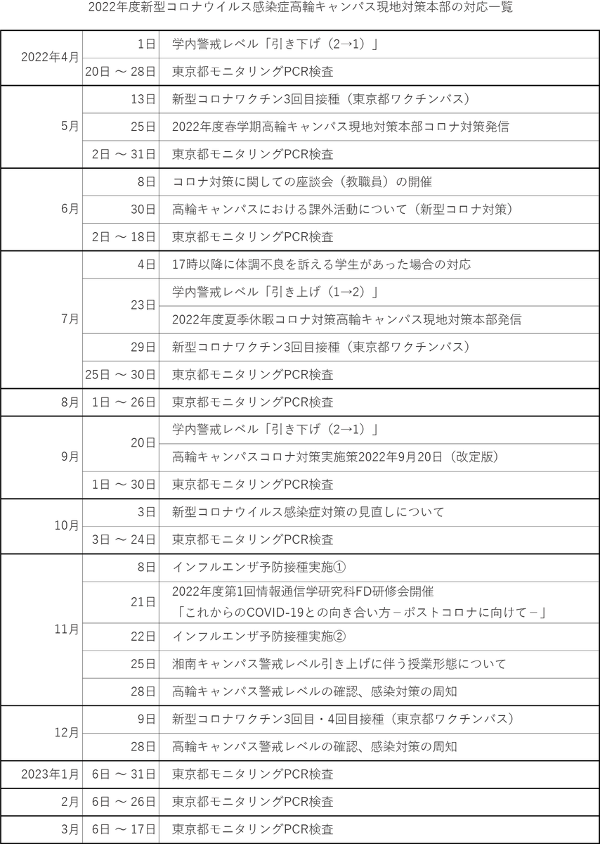 - 2022年4月(春学期)および9月(秋学期)に、新型コロナウイルス感染症対策対応に関する文書を発信