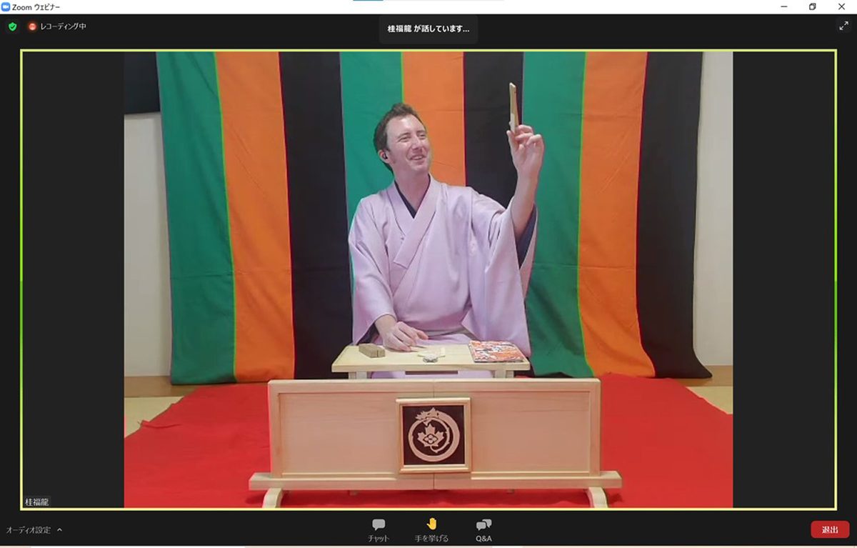 東海大学では5月29日にオンラインで、「第34回Online Global Citizenship Seminar “英語で笑おう”– Rakugo in English Part3」を開催しました。この催しは、キャンパスの国際化を進めるために、さまざまな分野の専門家や教員、目標に向かって挑戦を続ける学生が全編英語で講演するもの。今回はカナダ出身の落語家・桂福龍さんが講師を務め、本セミナーでは3回目となる英語落語会を開きました。