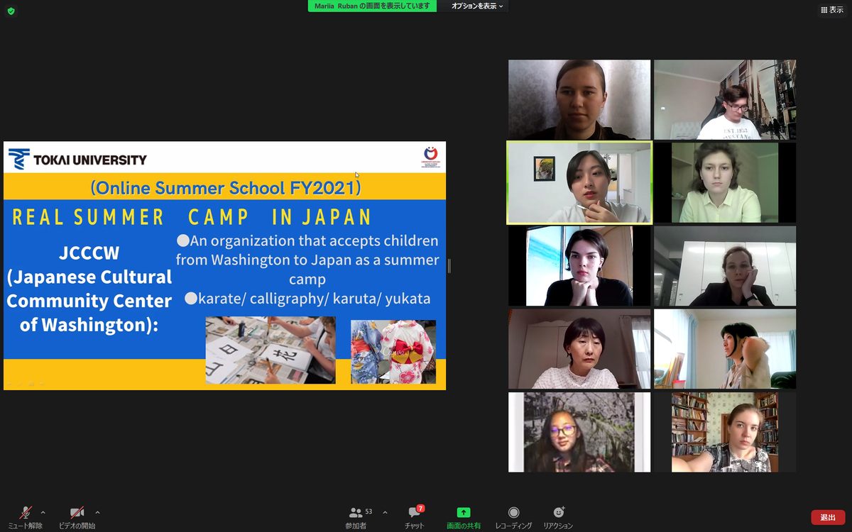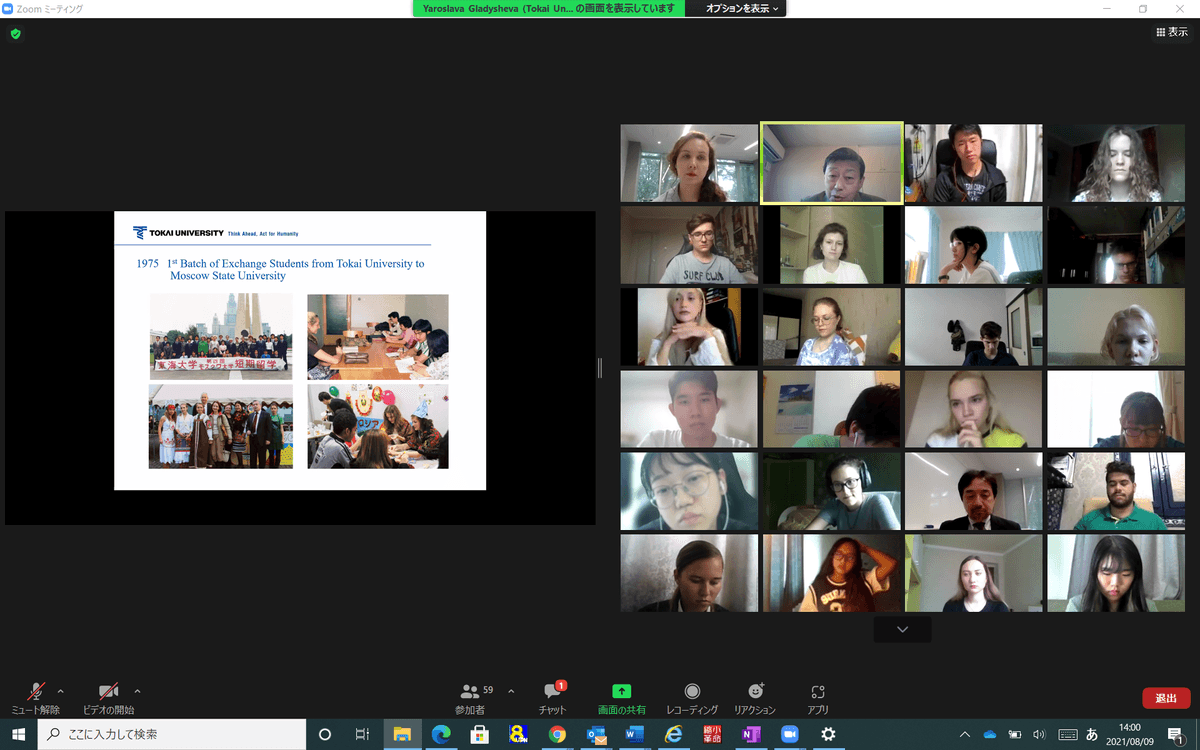 東海大学では8月9日から16日まで、日露の大学生を対象とした「Online Summer School」を実施しました。ヘルスケアや先端技術、経済・社会開発、交流史などについて両国の専門家から学び、相互理解と連携に向けた方策を話し合うことで、両国の懸け橋として活躍できる人材を育成することが目的。本学の学生のほか、ロシアの極東連邦大学、モスクワ国立総合大学、国立研究大学高等経済学院、サハリン国立総合大学、極東総合医科大学から50名が参加しました。