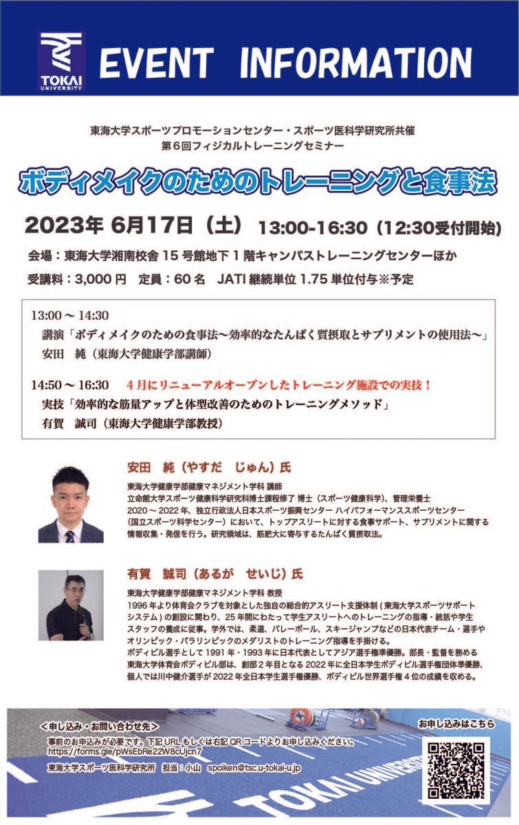 東海大学スポーツプロモーションセンター・スポーツ医科学研究所共催 第6回フィジカルトレーニングセミナー