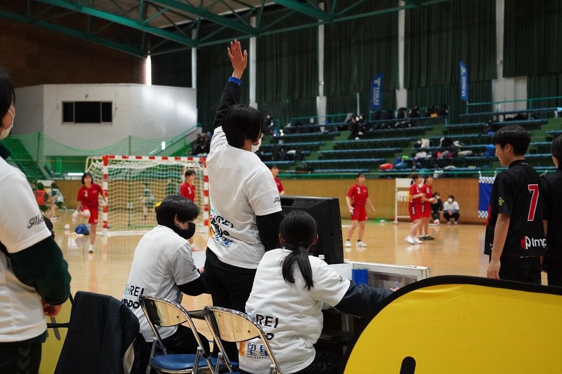 昨年度は秦野市総合体育館で行ったため、湘南キャンパスでの開催は2年ぶりとなりましたが、学生たちはそれぞれに割り振られた役割を全うしました。内藤ひな主将(体育学部3年次生)は、「たくさんの方々にご協力いただいたことで盛大に開催することができました。ハンドボールに対するエネルギーがあふれる高校生の姿を見て、多くの力をもらいました。私たちもチームが掲げる学生日本一という目標に向かって、さらにレベルアップできるよう頑張っていきたい」と話していました。