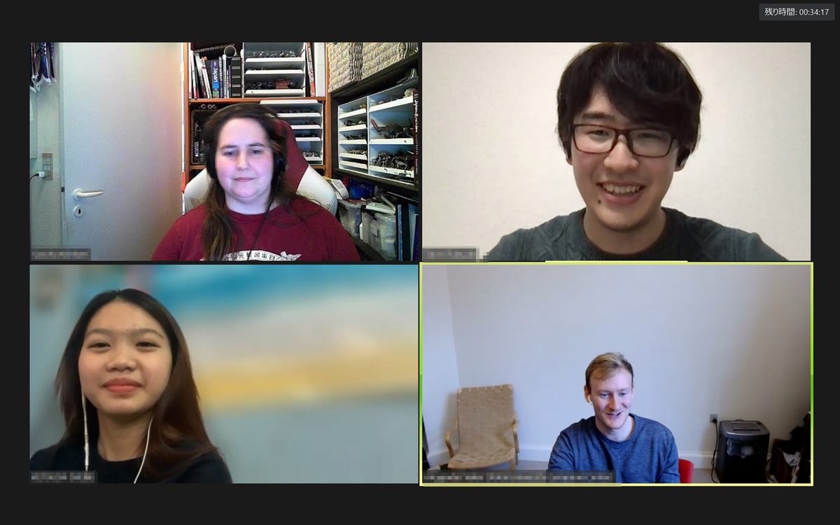 東海大学では2月24日と3月17日に、海外のパートナー校と本学の学生によるオンライン国際交流イベント「Tokai World Hygge」を開催しました。現在、学生は新型コロナウイルス感染症拡大により海外留学や対面での交流が中止になるなど、さまざまな制限を受けています。そこで、本学とパートナー校の学生を対象にオンラインで国際交流の機会を設けようと、昨年春から「Tokai Hygge」を実施。2月24日は「今年やりたいこと」、3月17日は「将来の夢」をテーマに、本学の学生、デンマークやフィンランド、ドイツ、タイ、台湾などのパートナー校の学生が一堂に集結し、両日ともに約50名が参加しました。