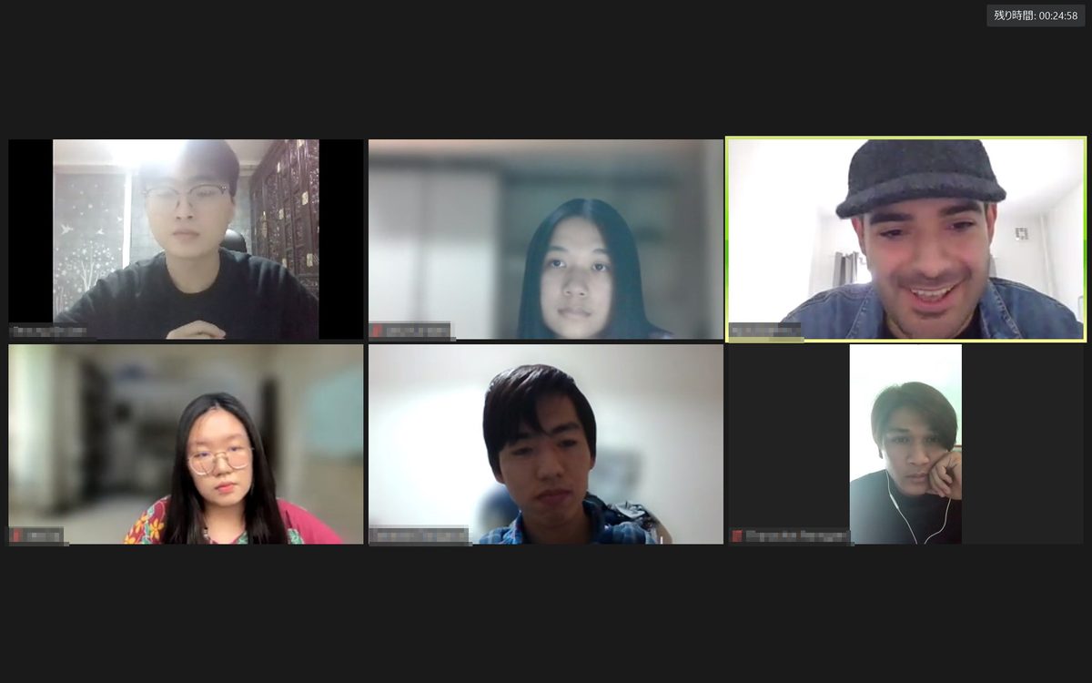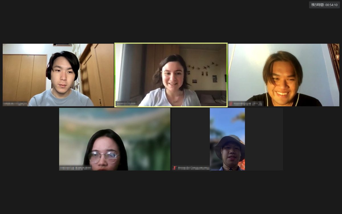 学生はそれぞれの語学レベルに合わせて、日本語や英語、Mix(日本語と英語)のグループに分かれて交流。グループディスカッションでは、互いの学生生活や日本観光した経験談、将来の夢やその実現に向けての取り組みなどについて語り合いました。また、好きな音楽を紹介し合う場面もあり、「映画『グレイテスト・ショーマン』の作中歌の『This is Me』を聞くとテンションが上がるので、大事な試験前などに聞いています」という回答に対して、「私も大好きな曲です」という回答が複数あり、国や言語が違っても音楽が与える影響力に驚いていました。