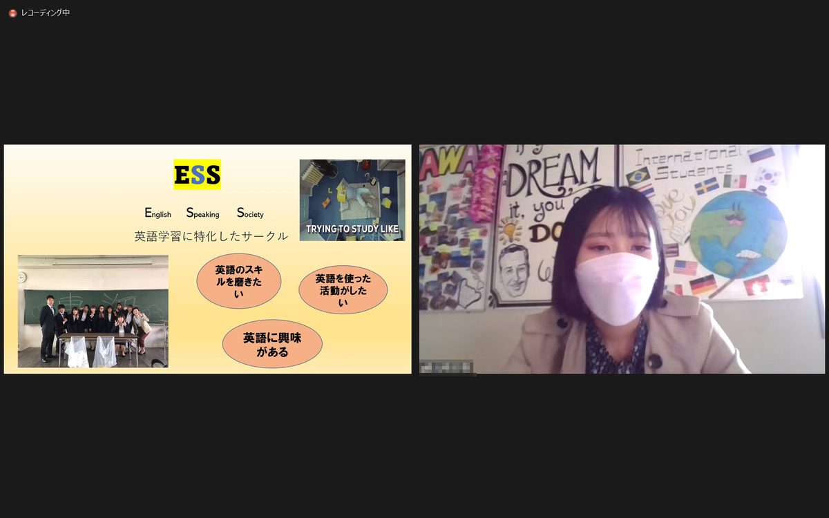 14日は、「大学をENJOY!海外への一歩!」と題して、各キャンパス・校舎で国際交流を行うプロジェクトやサークルが、新入生や在校生に向けて活動内容を紹介。札幌キャンパスの「English Speaking Society(ESS)」や豪華客船に乗船する観光客の通訳を行う静岡キャンパスの「ATLAS」など地域性を生かした活動展開する9団体が活動について紹介しました。15日は、湘南校舎1号館1階のGLOBAL AGORA(グローバル・アゴラ)とオンラインを併用して留学の個別相談も実施。最終日の16日は、HTICによる英語レッスンの体験を開催。学生はそれぞれの語学レベルに合わせて、初級と中級に分かれてレッスンに参加しました。また、今年留学から帰国した学生から現地での体験談を聞く「留学報告会」も行いました。
