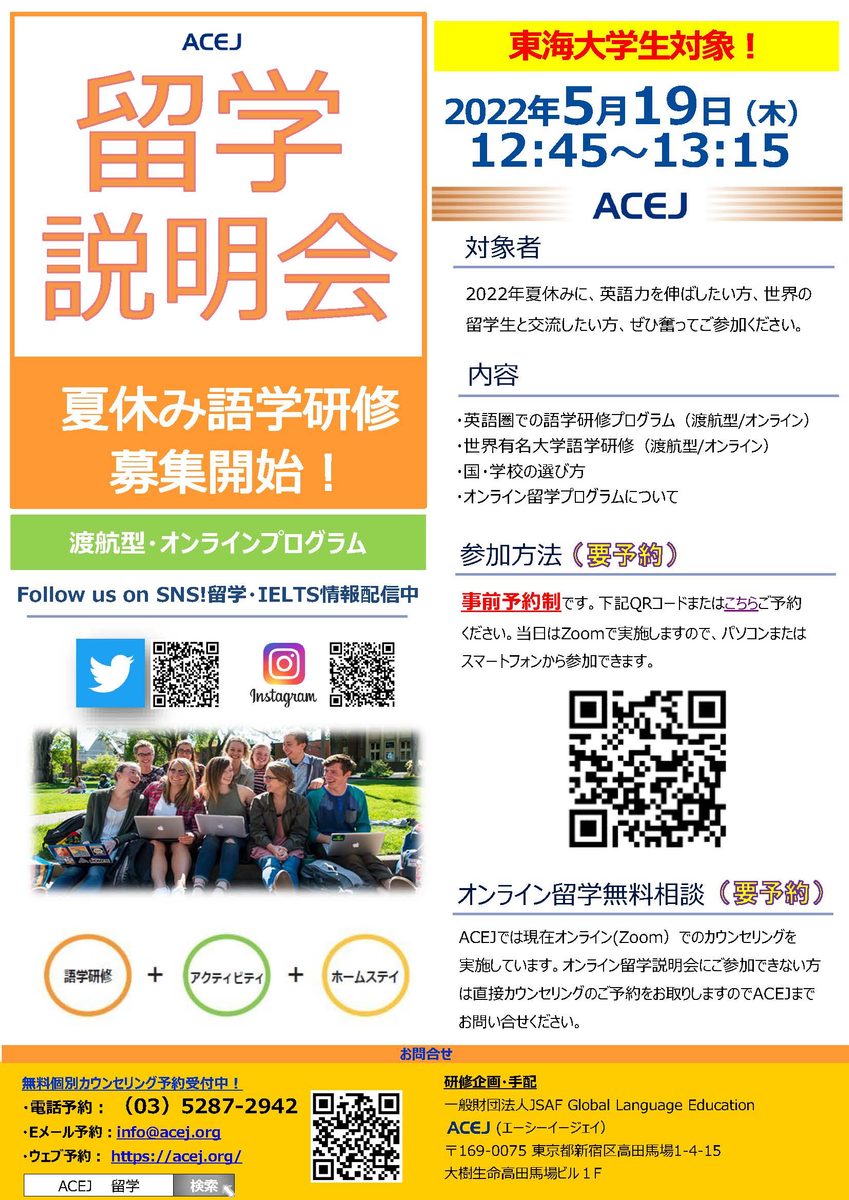 【JSAF主催】ACEJ夏の短期留学説明会のお知らせ