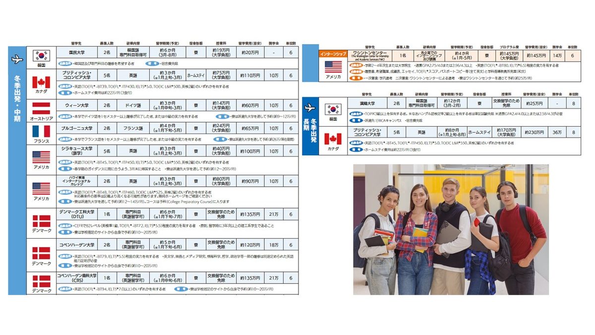 2024年度冬季に出発する留学プログラムの募集を6/11(火)~6/25(火)に行います。