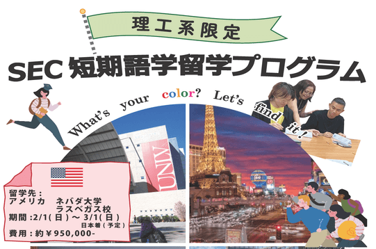 【サイエンス・エンジニアリングカレッジ主催/理工系限定】 冬季出発 短期語学留学プログラム説明会のお知らせ