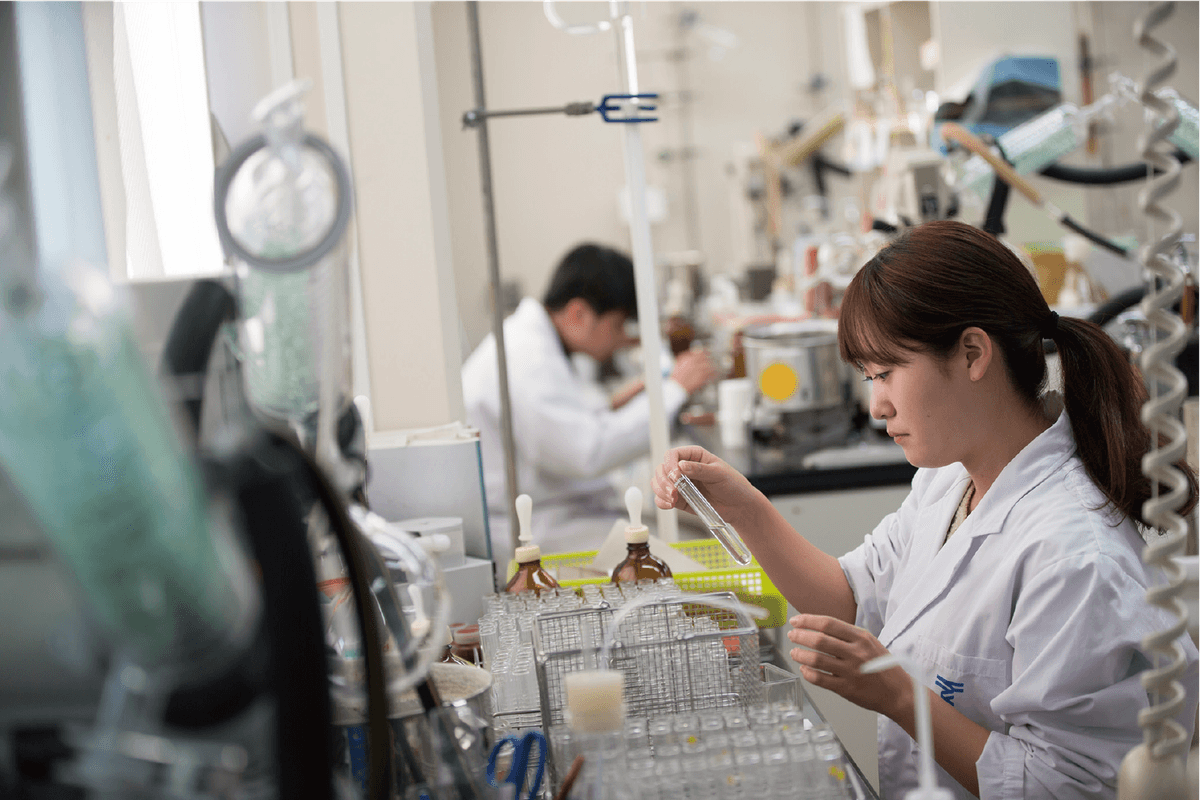 食生命科学科では、生命科学的な観点から生物(動物・植物・ 微生物)やその生産物の特質についての幅広い学識を身につけます。そして食の重要性と生命の尊さを理解し、総合的な専門知識で人類の健康に貢献できるような人材を養成します。