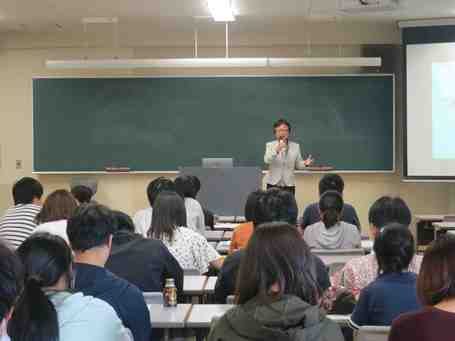 10月9日、この日農学部において、外部講師によるフード サイエンティスト資格認定研修会を行いました。これは食品科学教育協議会が認定する資格で、大学や短期大学等の各学校で同協議会が定める食品、微生物に関する特定の講義や、実験実習、認定研修を受講した学生を審査し、合格した学生に対して、「食品科学技術認定証」が授与され、フード サイエンティストと称することを認めるものです。本学農学部は同協議会の正会員校で、同資格教育を行う養成校として認定されています。今年度は岡本洋子先生(広島修道大学健康科学部、教授)に来学いただき、「呈味成分と機能性」について研修講義をしていただきました。応用植物科学科、応用動物科学科、バイオサイエンス学科の4年次の学生64名が受講し、「味」をキーワードに味を伝える舌の構造、味を感じるメカニズム、呈味に影響を及ぼす因子等について、講師の先生の最近の研究成果とともに理解を深めました。