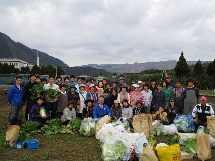 阿蘇実習フィールドで11月7日、農作物の収穫イベントを行いました。本学では2018年1月に環境省ならびに熊本県と「阿蘇地域の創造的復興に向けた地域循環共生圏の構築に関する協定」を締結しており、その一環で本学と南阿蘇村は熊本地震に見舞われた阿蘇地域の創造的復興に向けて「南阿蘇村黒川地区創造的復興プロジェクト」を実施しています。今回のイベントもその一環として、昨年に続いて企画したものです。
