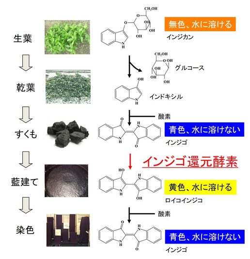 米田准教授は、「私が学位を取得した徳島県では、『すくも』を使った阿波藍染が盛んであり、伝統産業として身近な存在でしたが、その藍染めの過程には科学的に解明されていない、いわゆる”ブラックボックス”の部分が多いこともあり、約6年前から研究に取り組んできました。酵素の機構やその働きを生化学的視点から明らかにしたことで、これまで染色に携わる職人が気候や温度を見極め、その経験と勘を頼りにしていた作業を効率的に進めることができるようになると考えています。今後も染色技術の発展に寄与していきたい」と話しています。