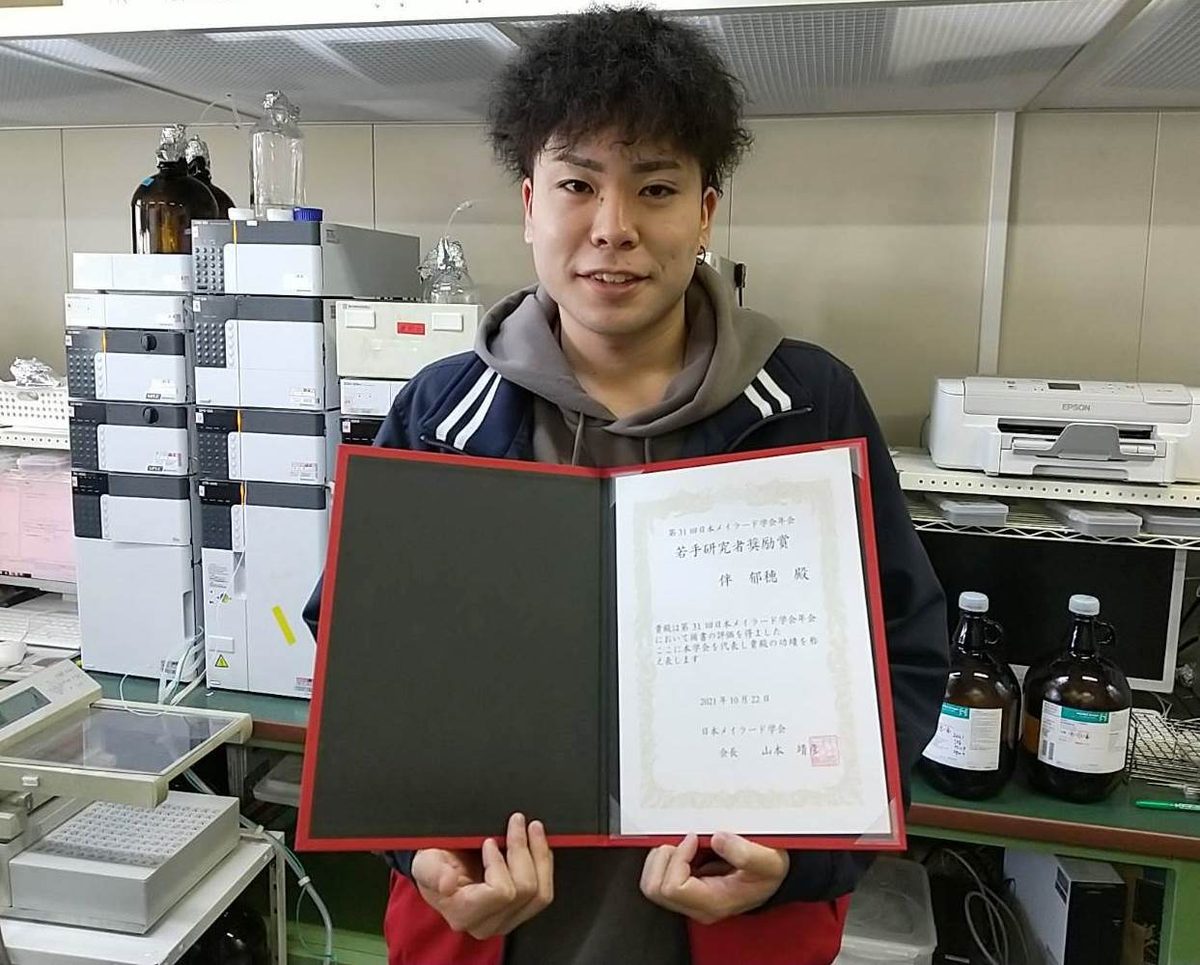 バイオサイエンス学科を卒業し、現在、同大学大学院農学研究科修士課程2年生の伴郁穂さんが第31回日本メイラード学会にて若手奨励賞を受賞しました。