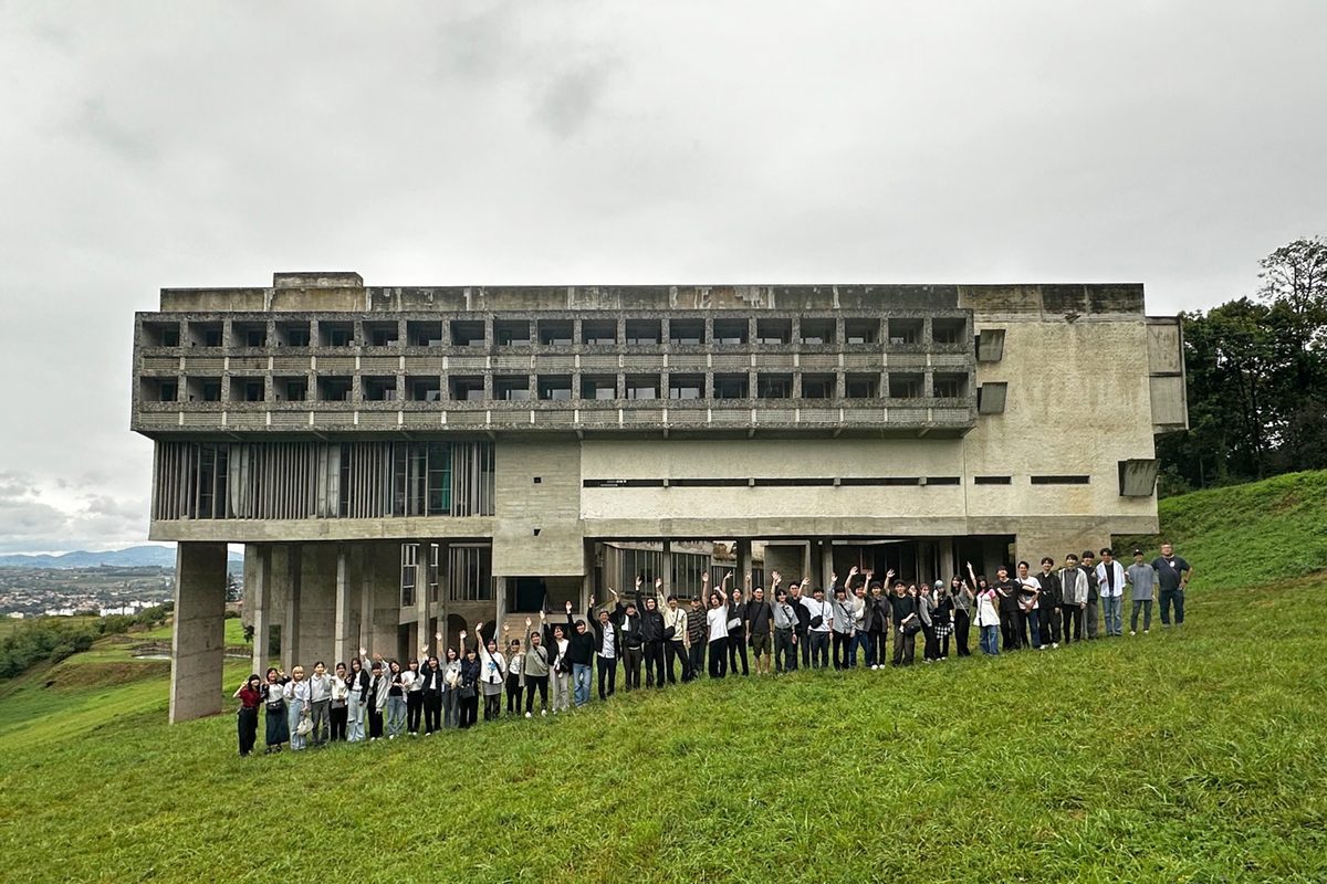 最初にフランス入りした一行は、「鳥」と称されるシンボリックな外観が印象的なリヨン・サン=テグジュペリTGV駅を視察。ルネサンス期の古い町並みが残り世界遺産にも登録されたリヨン歴史地区のフルヴィエールの丘、現存する紀元前43年建造のフルヴィエール・古代ローマ劇場、リヨン新市街地にあるコンフリュアンスミュージアムなども見て回りました。リヨン郊外ではル・コルビュジェ設計のラトゥーレット修道院に宿泊をし、そこでのスケッチと実測調査を行い、ミサにも参加し修道士の方々とも食事を共にしました。そのほか、本学部の岩﨑克也学部長による「ラトゥーレット修道院を解読する」と題した講義も行いました。フィルミニ・コルビュジェ建築群では、写真などで1度は目にしたことのある建築に学生たちは見入っていました。スペインに移動してからは、バルセロナパビリオンのほか、アントニ・ガウディ設計のカサ・ミラやグエル公園、サグラダ・ファミリアも見学。サンセバスチャンにあるナバラ大学博物館やイエス教会、ビルバオのグッゲンハイム、マドリードでは鉄骨アーチ状の空間に熱帯植物が生い茂るアトーチャ駅やソフィア王妃芸術センターなども訪れました。自由時間には個々のテーマや興味に合わせて各地を視察しました。
