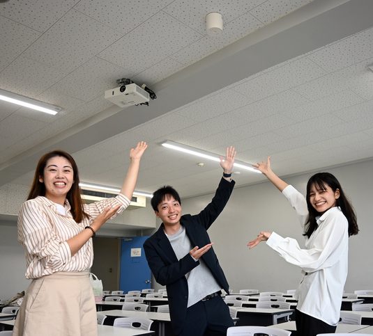 秦さんは、「自分たちの研究成果が実際に採用されたと聞き、本当に驚きました。図面やデータをもとに計算し、実際に教室を見に行って照明器具を確認するなど、研究を形にしていく過程はとても楽しかった」と振り返ります。下村さんは、「各自50個ずつアイデアを出し、その中から実現可能性を考え、パソコンの計算ソフトの使い方から勉強して研究を進めてきました。大変なことも多かったけれど、社会人になってから仕事で実際の現場を見ると、自分たちの研究してきたことが社会で役に立っていると実感しています」とコメント。鈴木さんは、「1号館についてさまざまな検討を積み重ねた結果、設備や外壁等の更新の機を捉えて計画的に進めることで、2050年までにZEBを実現できるという結論を導くことができました。ゼロ・カーボンキャンパス実現に向けて、研究成果が採用されたらうれしい」と話しました。指導した山川教授は、「学生たちには“研究だけで終わらず、提案して実現を目指そう”と話しています。3名は自分たちで考え、さまざまな知識や技術を組み合わせて形にしてくれました」と評価します。学長室施設設備担当の石丸由理さんは、「具体的な数値に裏付けされた現実的でかつ実現可能な提案だったので、短い期間で形にすることができました。今後も先生方と連携し、よりよいキャンパスにしていきたい」と話しています。