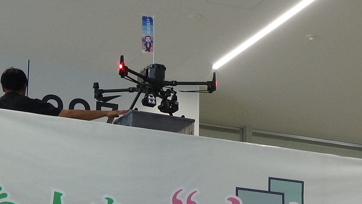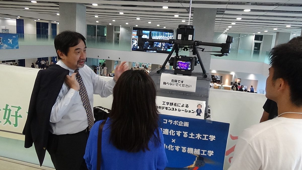 土木工学科「まちづくり」展✖山本工学部長によるドローンを使った特別デモンストレーションのコラボもあり、注目度は抜群でした。