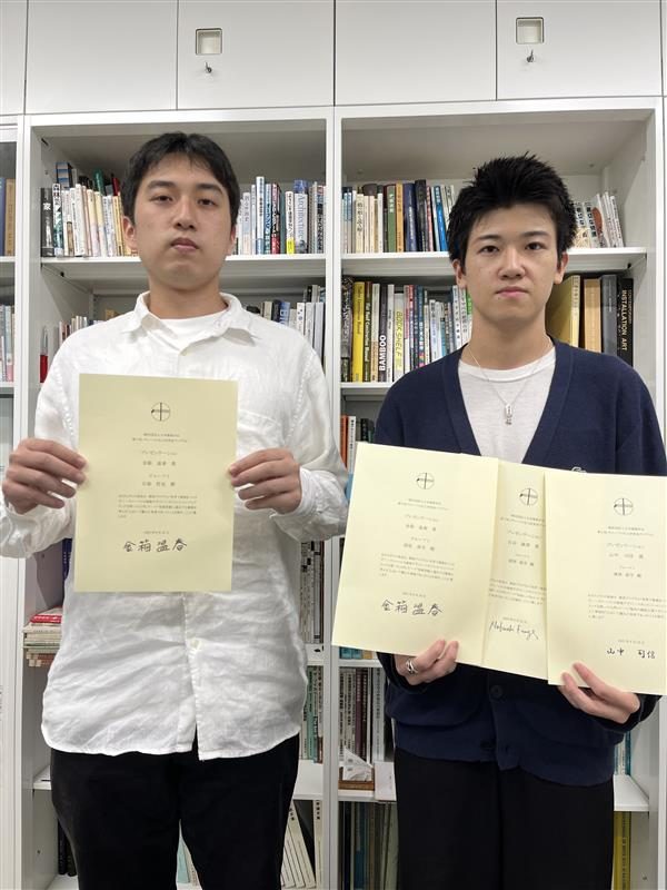 建築都市学部建築学科4年次生の石塚哲也さんと清原寿平さんが、8月19日、20日に東京・港区の建築会館ホールで開かれた第9回日本建築学会グローバル化人材育成プログラム「世界で建築をつくるぞ!─グローバルな建築デザイン・マネジメント・エンジニアリング分野への入門」(主催:日本建築学会)に参加し、プレゼンテーション賞を受賞しました。このプログラムは、世界で活躍する志を持つ学生に、建築をめぐる世界の状況や将来の方向性など基本となる認識や最新の情報に触れる機会を提供する目的で開催されています。今回は全国から建築系の学生50名が参加しました。
