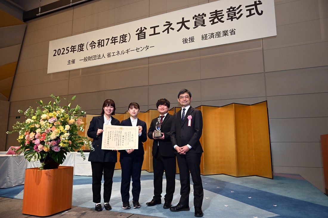 建築都市学部建築学科の山川智教授が参画する研究グループがこのほど、「2025年度 省エネ大賞」(主催:一般社団法人省エネルギーセンター、後援:経済産業省)の省エネ事例部門「資源エネルギー庁長官賞」(支援・サービス分野)を受賞しました。省エネ大賞は、国内の企業・自治体・教育機関等に対して、優れた省エネ推進の事例や省エネ性の高い製品、ビジネスモデルを表彰するものです。1月28日に東京ビッグサイトで開催された表彰式で賞状とトロフィーが贈られました。