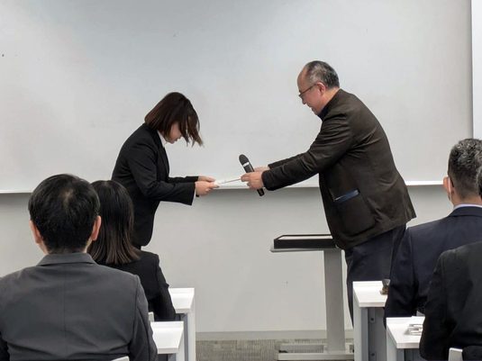 表彰式では初めに、建築学科の渡部憲教授が学部長代理であいさつに立ち、「受賞した学生は今後の人生の糧に、できなかった学生は何が足らなかったのかを考えて次に生かしてください。最後まで取り組んだことをぜひ誇りに思ってほしい」と語りかけ、全員に修了証を手渡しました。続いて5つの企業から最優秀賞と優秀賞などが発表され、賞状と記念品が贈られました。参加した学生たちは、「サミットを通して学んだことを今後の研究や人生に生かしていきたい」「企業の方々に自分たちにはない現場の目線でサポートしていただき、勉強になりました」といった感想を口々に話していました。今年度は初めて他学部生も参加し、健康学部健康マネジメント学科の学生は、「アイデアを出していく中で、普段触れることのない視点を見つけることができました」と語り、ペアを組んだ建築学科生は、「社会に出てからも他の職種の方と関わる機会があると思うので、いい経験になりました」と話していました。