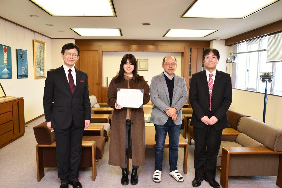平井さんは、「新型コロナウイルス感染症が拡大する以前から共同研究先の大学などにも足を運んで研究を続けてきました。自粛の期間はデータ解析に充てました。今回の受賞には驚きましたが、指導してくださった木原先生をはじめ、共同研究の先生方や研究室の仲間に感謝したいと思います」と語り、木原教授は「本学科では学生にパワーポイントを使って研究発表をする機会を数多く設けています。研究内容はもちろんのこと、修得したプレゼンテーション技術が今回の優秀な発表にもつながったのではないでしょうか。大学院生や企業・大学の研究者が多数発表する中での受賞はとても価値があると思います」と話していました。