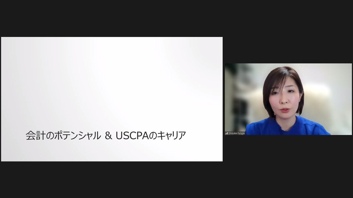 11月8日に、オンライン会計セミナー「FOLLOW YOUR HEART ―USCPAが語るキャリアの話-」を開催しました。セミナーは、カリフォルニア大学ロサンゼルス校(UCLA)ビジネス経済学部を卒業後、Ernst & Young Chicago LLP、EY新日本監査法人を経て、現在、武田薬品工業株式会社で内部統制(US-SOX)業務に従事する、米国公認会計士(USCPA)の古谷静香氏が講師を務めました。