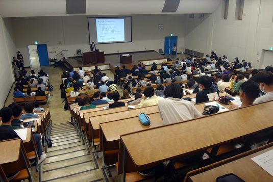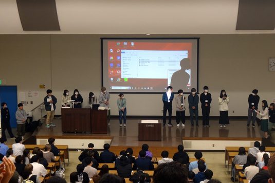 また、1セメスターでの必修科目である「入門ゼミナールB」を担当する教員6名の自己紹介や、政治経済学部経営学科の卒業生で株式会社浜野製作所社長の浜野慶一氏による講演も実施しました。