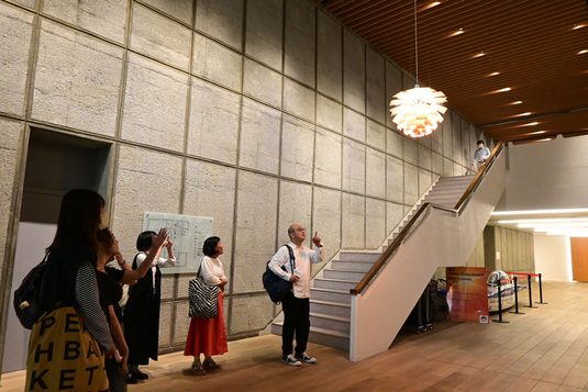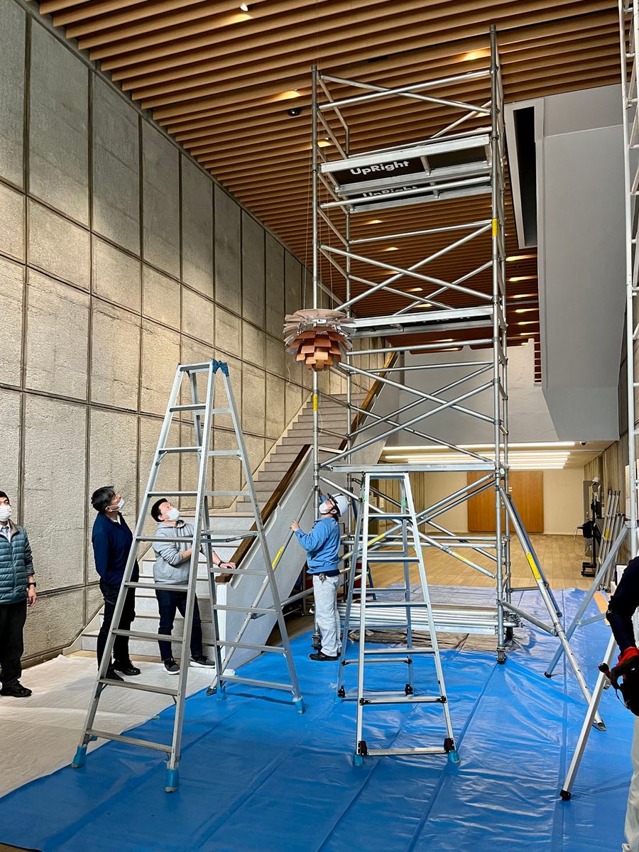 また、終了後は本授業に協力している文化社会学部北欧学科の柴山由理子准教授のコーディネートで、荒谷氏の案内により本キャンパス4号館エントランスホールの「PHアーティチョーク」などの見学会も実施。「PHアーティチョーク」は1972年に北海道・旭川市に開学した旧東海大工芸短期大学に設置されたものを、その後札幌キャンパスで保管していたものです。本学の織田憲嗣名誉教授と荒谷氏の監修で、52年前に購入したランプは最新のLED光源にアップデートされ、4号館で輝いています。学生たちは北欧デザインを基調にまとめられた学長室も見学。参加した森優華さん(2年次生)は、「デンマークでの照明の使い方やデザインにおけるこだわりが実際に製品のデザインや設置に反映されているのを目の当たりにして、興味深く感じました実際の製品を目の前にしてお話しいただく貴重な機会を得られてうれしかった」と話しました。