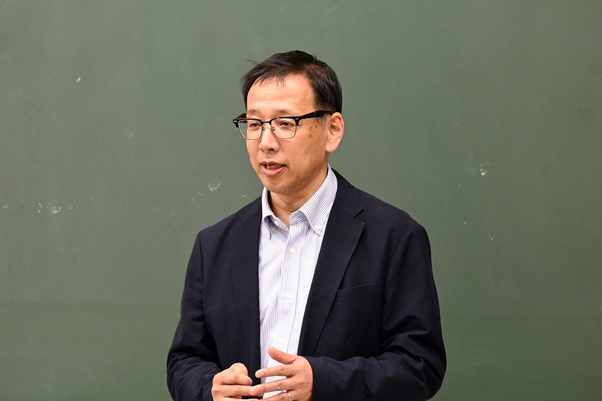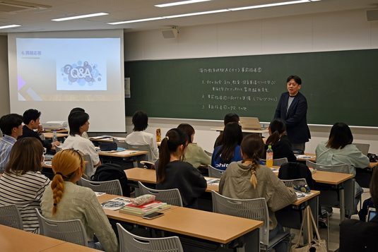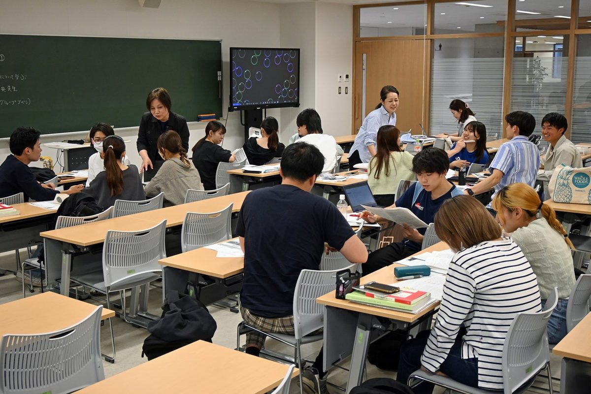 当日はまず、山本康治学部長があいさつに立ち、「『海外教育体験A』の準備のため昨年度の夏にタイを訪問しました。タイは都市部と地方部での教育スタイルに違いが見られるので、学生の皆さんは現地で豊かな経験を得られるだろうと期待しています」と話しました。続いて、本学アセアンオフィスの富田紘央次長(語学教育センター講師)が登壇し、タイの文化や滞在中の注意点、本学と長年にわたって交流しており今回の訪問先にも含まれるモンクット王ラカバン工科大学について紹介。「期間中はタイの大学生に通訳してもらう予定ですが、ぜひ現地の子どもたちと交流してください。自分のニックネームを考えて、簡単な自己紹介やあいさつができるようにタイ語を練習しておいてください」と語りました。その後、学生たちは現地訪問でともに行動する4人ごとのグループに分かれ、次回7月の事前指導で行うプレゼンテーションに向けて、発表で使う文献を調査しました。現地訪問に引率する前田晶子教授は、「海外に行くので人から情報を聞くだけでなく自分自身でもインターネットなどで調べ、不安のないよう準備を進めてください」と呼びかけました。