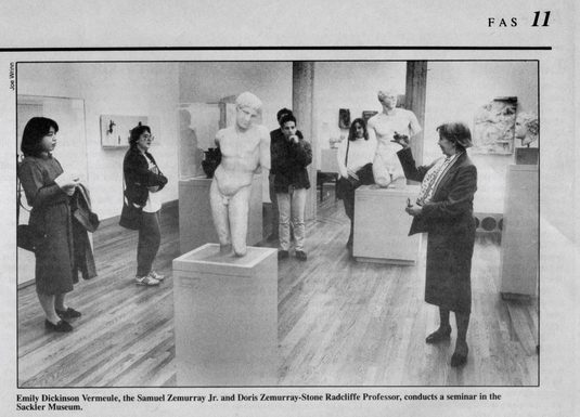 最近、留学中の資料を整理していると、当時の大学新聞で、美術史の授業風景をとりあげた記事が出てきたので、ここにご紹介します。新聞は、『ハーバード大学新聞(Harvard University Gazette』という名称で、1989年5月28日のものです(写真B)。