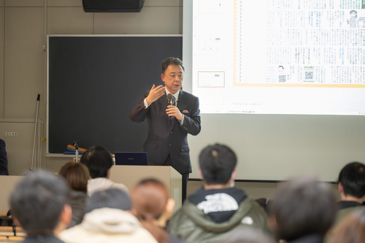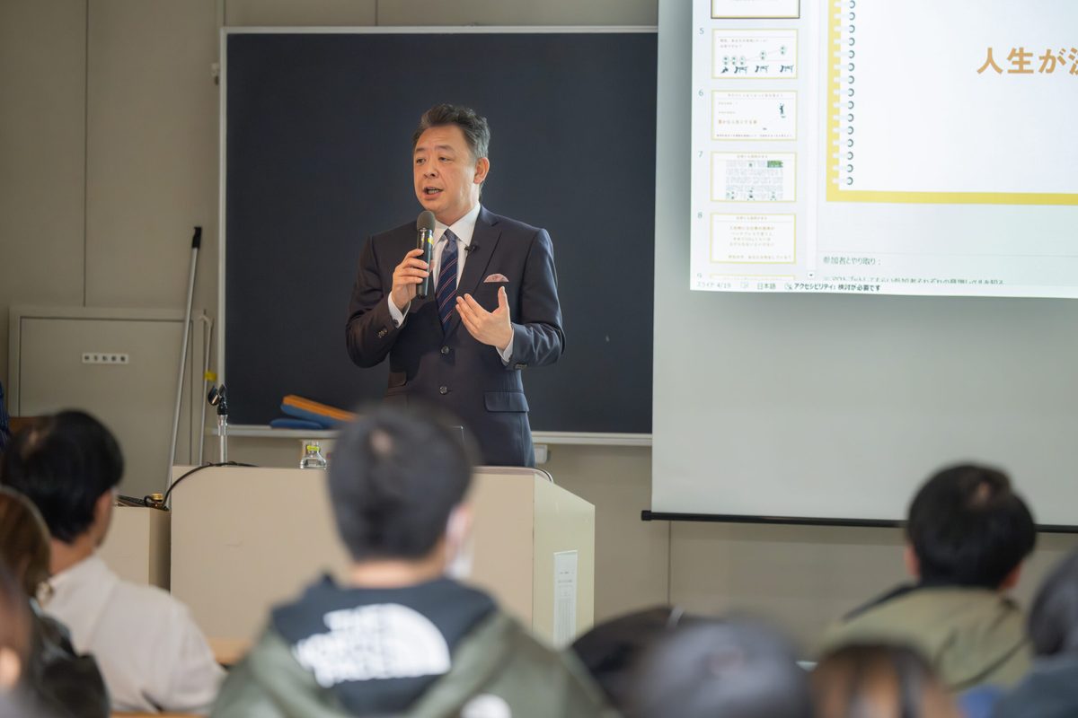 集まった50名ほどの学生たちは、ふだんの授業とは違う経験に裏打ちされたお話におおいに刺激を受け、自らの人生について深く考える機会を得たようでした。