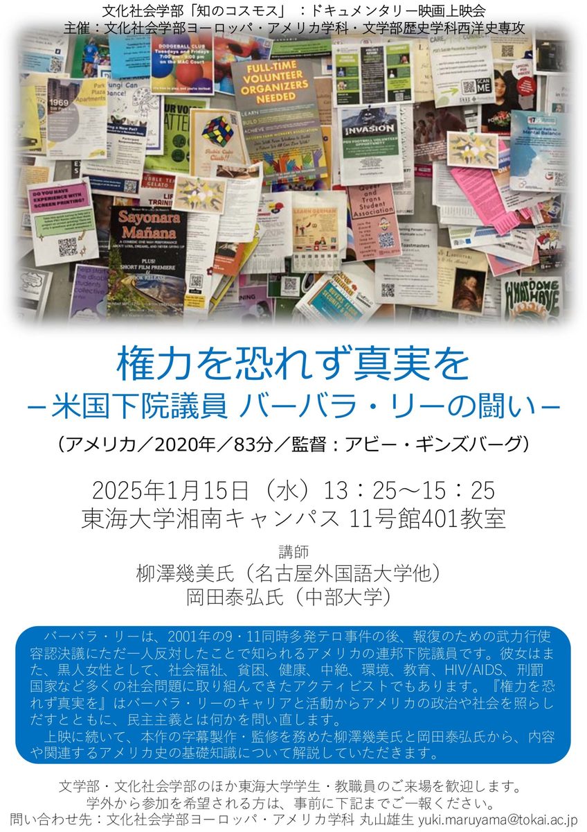 企画名 :「『権力を恐れず真実を-米国下院議員 バーバラ・リーの闘い-』上映会」