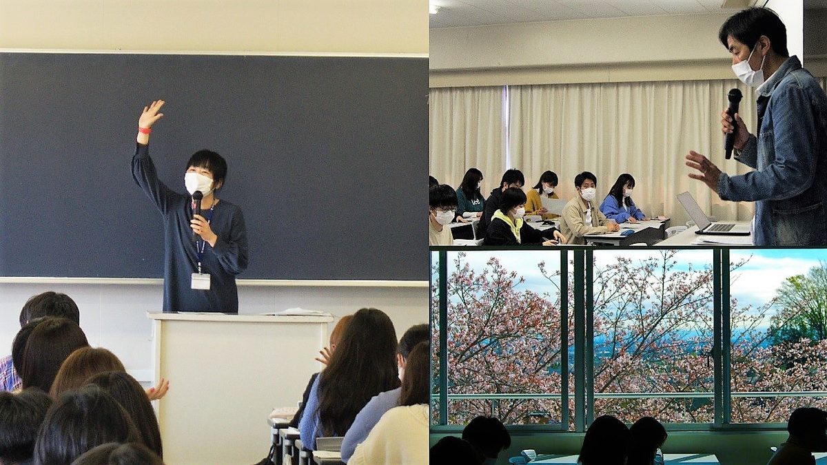 心理・社会学科での4年間の学びの進め方や、1年生の履修についてなど、入学後の学生生活の充実を目指してガイダンスが行われました。(コロナ禍の影響で久しぶりの対面セッション)。少し緊張した?!学科の先生方でしたが、1年生との出会いがうれしいようで、笑顔で自己紹介をしていました。