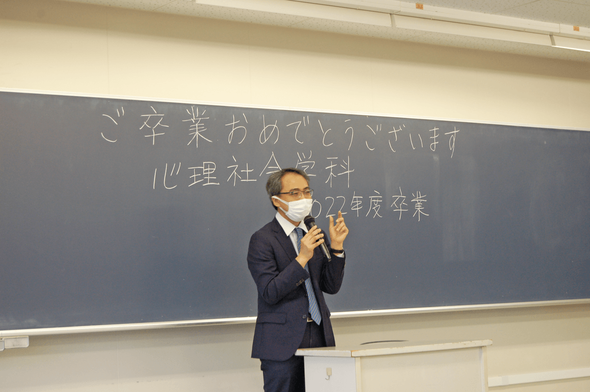 3月25日(土)に2022年度秋学期の学位授与式が行われました。今年度は82名の学生が、東海大学文化社会学部心理・社会学科を巣立ちました。晴れの日を迎えた卒業生の笑顔は、輝きを増していました。キャンパスの桜も、卒業を祝うかのように咲き誇っていました。大学生活のうちの3年間が新型コロナウィルスの感染拡大と重なった学年でしたが、最後の1年となった今年度は対面で行うことができた授業も多くありました。卒業生の大学生活の最後の1年、顔を合わせて過ごすことができたのは教員にとってもうれしいことでした。学位授与式当日は、キッチンカーなどが出て、ステーキやチキンレッグ、飲み物などがふるまわれたそうです。久しぶりに友人と楽しく過ごした様子を聞くことができました。