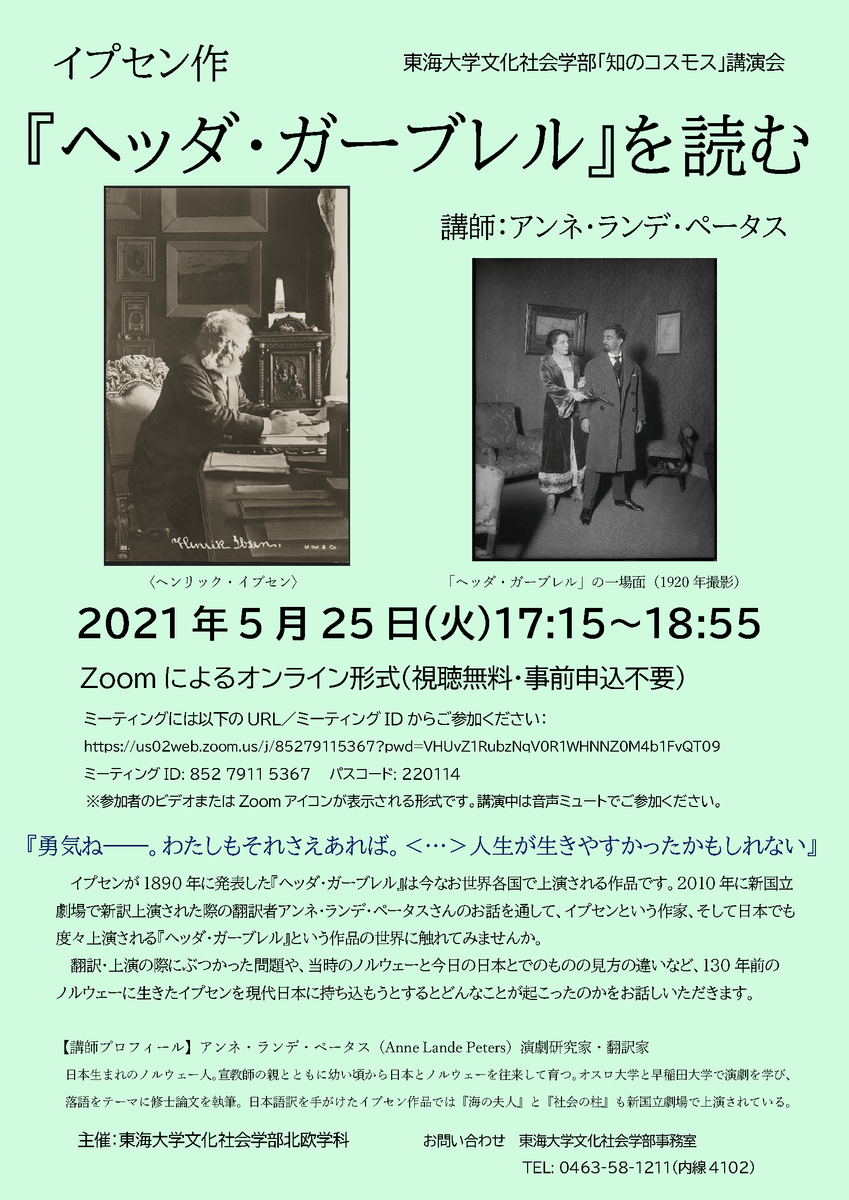 文化社会学部北欧学科では5月25日(火)に、演劇研究家・翻訳家であるアンネ・ランデ・ペータス(Anne Lande Peters)氏を講師にお迎えし、劇作家イプセンに関する講演会を開催いたします。