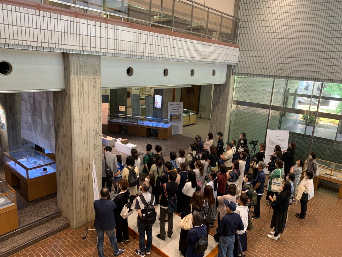 見学会では、松前記念館にて本学所蔵の古代エジプトコレクションの見学を実施いたしました。エジプトコレクション紹介では、文化社会学部アジア学科の山花京子教授より、学生による修復保存やチャレンジプロジェクト活動について説明、希少な品々を紹介いただき、大変好評でした。