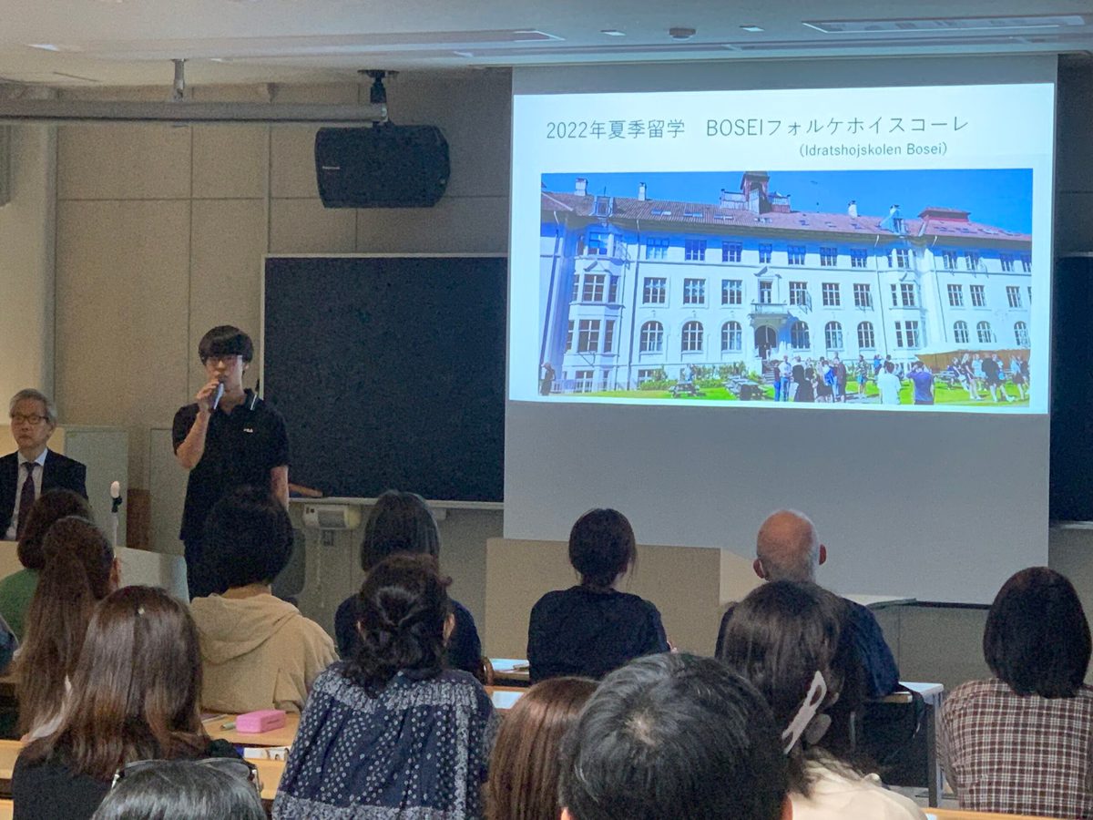 また、文化社会学部・文学部の説明は、文学部歴史学科西洋史専攻の三佐川亮宏教授が担当され、付属高校出身の学生には留学の魅力について語ってもらいました。