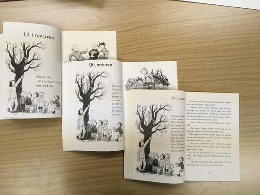 スウェーデンでは、日本の小学校と中学校とが合わせた基礎学校と呼ばれる9年制の学校があります。小学校1年生とは基礎学校の1年生で、スウェーデン語の教科書というのは日本でいう国語の教科書ですね。