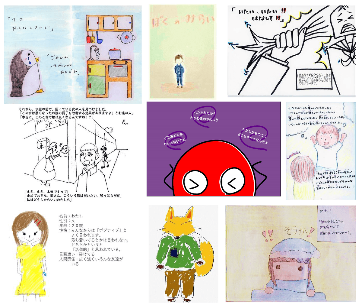 変化する社会状況に応じ、心理学や社会学の観点から解決を図るべき課題をテーマにして、学科の学びで獲得した認識枠組みや知見を活かし実践的な提案の発信を目指す少人数授業、それが「プロジェク演習1・2」です。その授業の一つに「絵本制作プロジェクト」があります。この授業では、発信メディアとして絵本が持つ機能に注目し、作品制作を通じて、「生きづらさ」を抱え社会で見過ごされがちである様々な当事者の存在や声をどのように届け、読み手の意識や行動の変化にどのように促していくかを模索しています。絵本の制作経験のない履修生の多くは、自作の絵を描くことをはじめ、当事者の声や経験の受け止め方、また声や経験を心理・社会学的な視点から問題構成して作品の中に組み込む工夫など、作品づくりの困難や苦労を経験します。しかし、次第に形となっていく作品群を相互評価する場面での打開のヒントの発見や共有を重ねる中で、「生きづらさ」とその緩和への期待が当事者に限られたものではなく、自分たちにとっても重要な課題であることを実感するようです。絵本は懐かしさを憶える図書であるかもしれませんが、読み手・作り手を問わず、世界の見方を変える興味深いメディアでもあるのです。